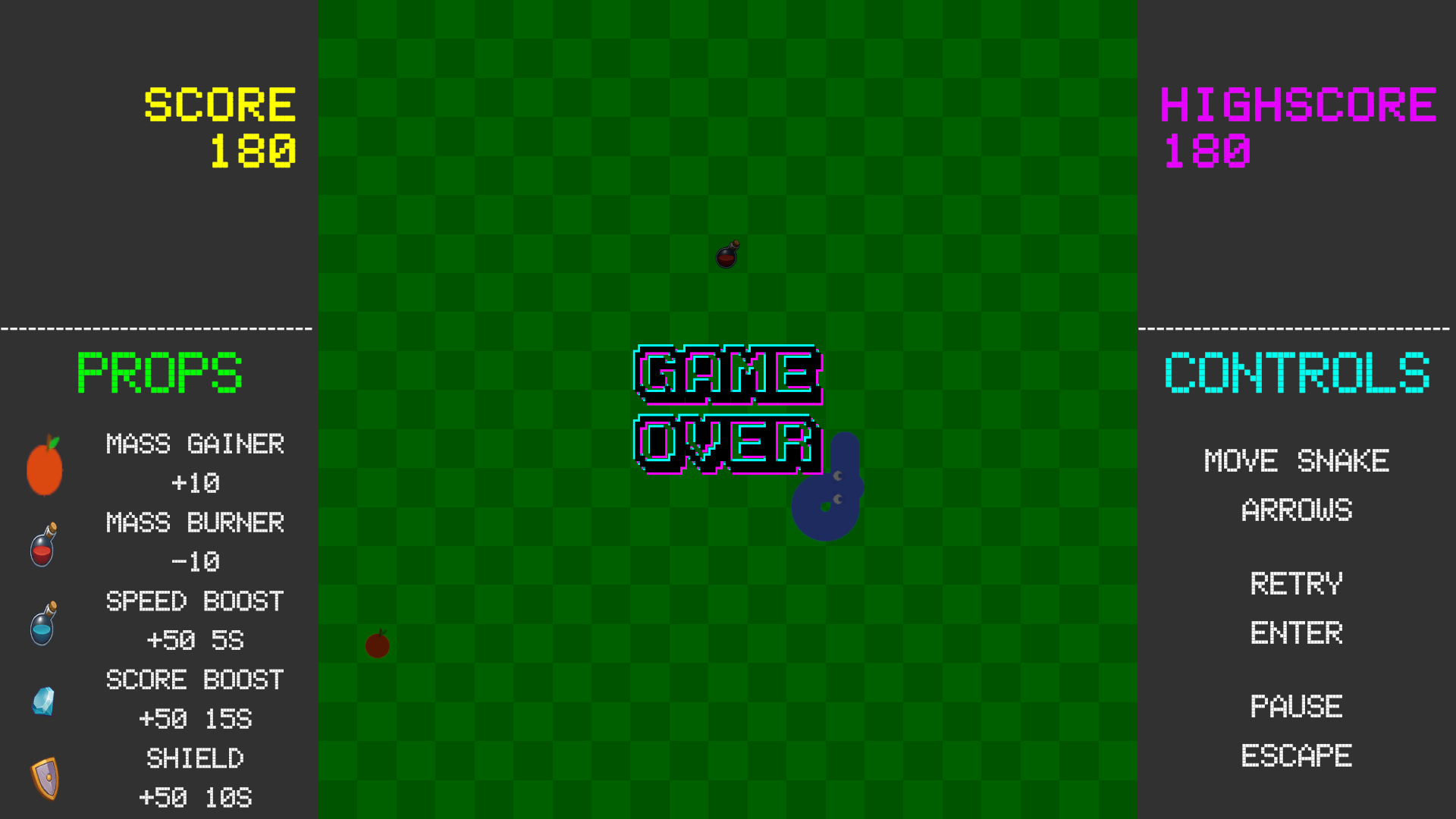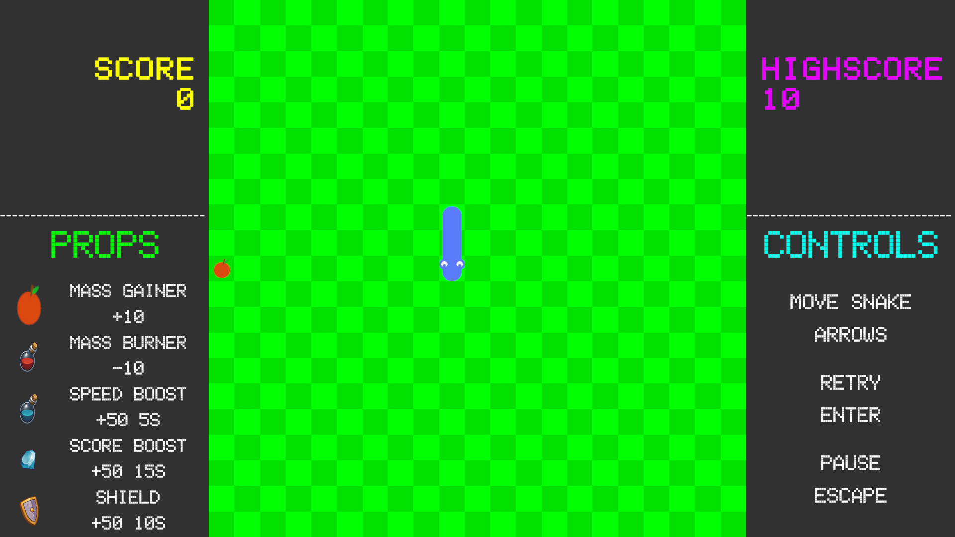 Snake 2D introduces a variety of props to keep gameplay exciting: